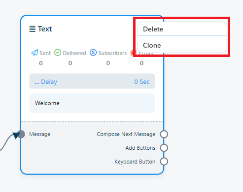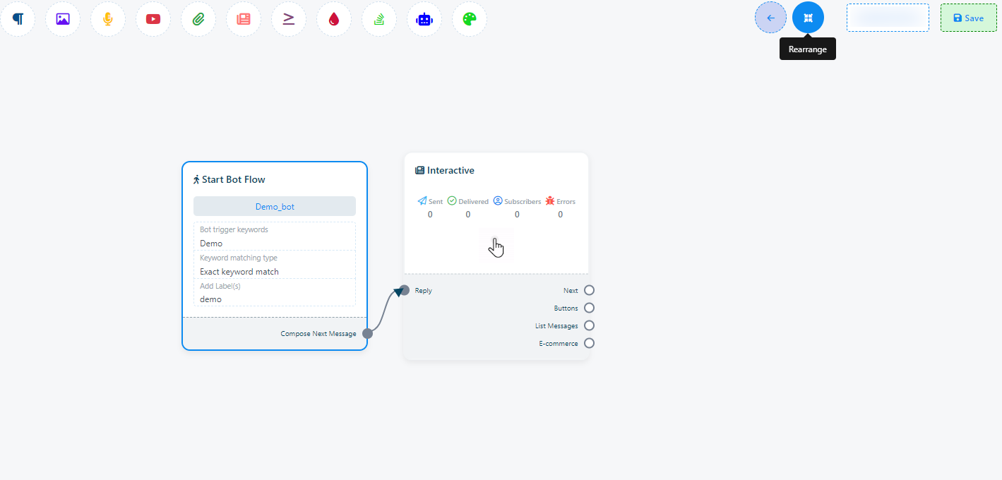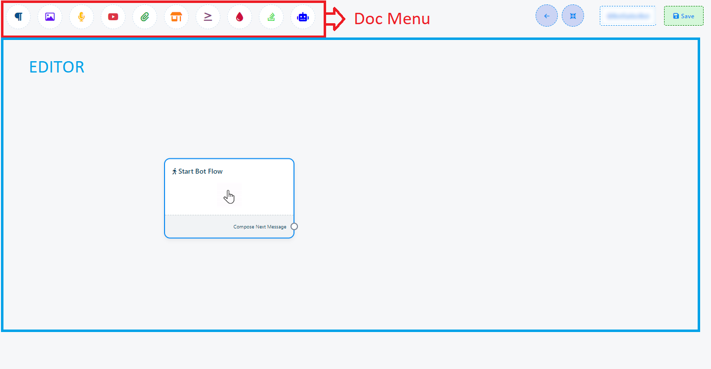 Once you`ve completed the `Start Bot Flow` setup, you`ll encounter a sockets: `Compose Next Message`, These sockets allow you to add various components and configure them.