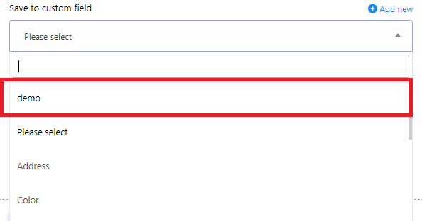 - Use Added new Custom field: After creating a new custom field, you can choose it from the `Save to Custom Field` pop-up menu.