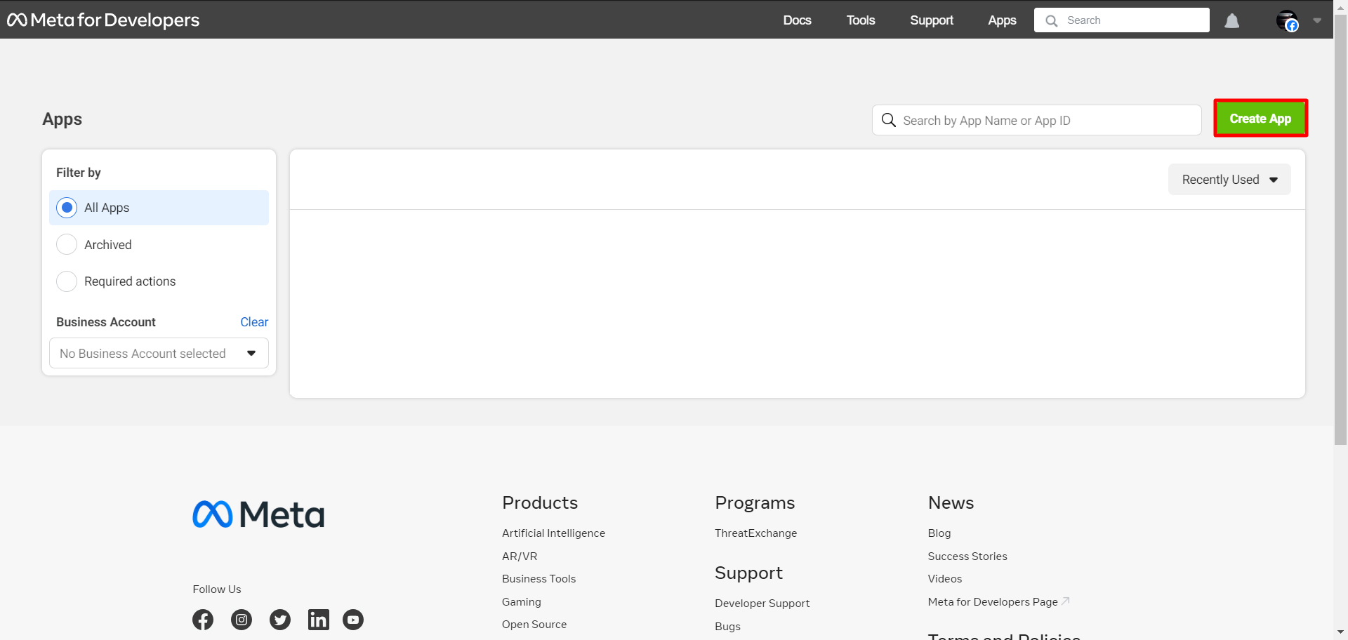 Now click on the Create App button.