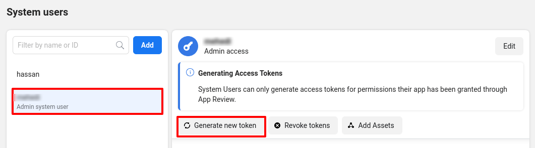 Then a list of available permission will appear. From the list, you have to select Business management,Catalog management,WhatsApp business messaging, and WhatsApp business management. Now click on the Generate token button.