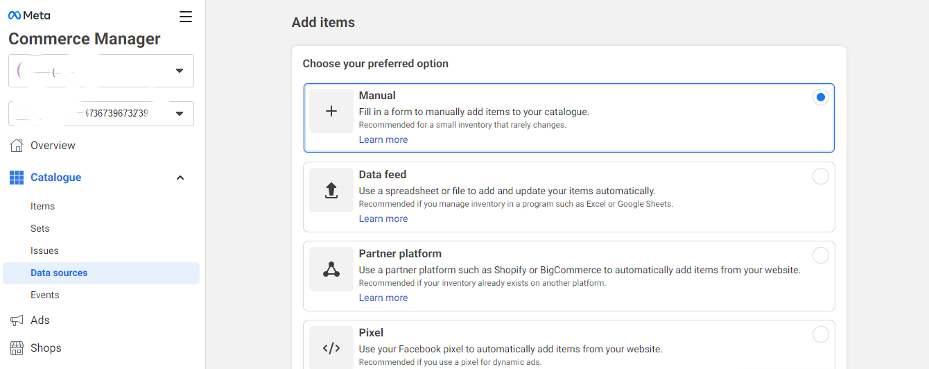 - Choose to add products manually.